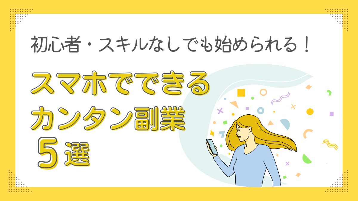 そこで今回は、スキルなし初心者さんでもできる、スマホだけで手軽に始められる副業を5つピックアップしました。